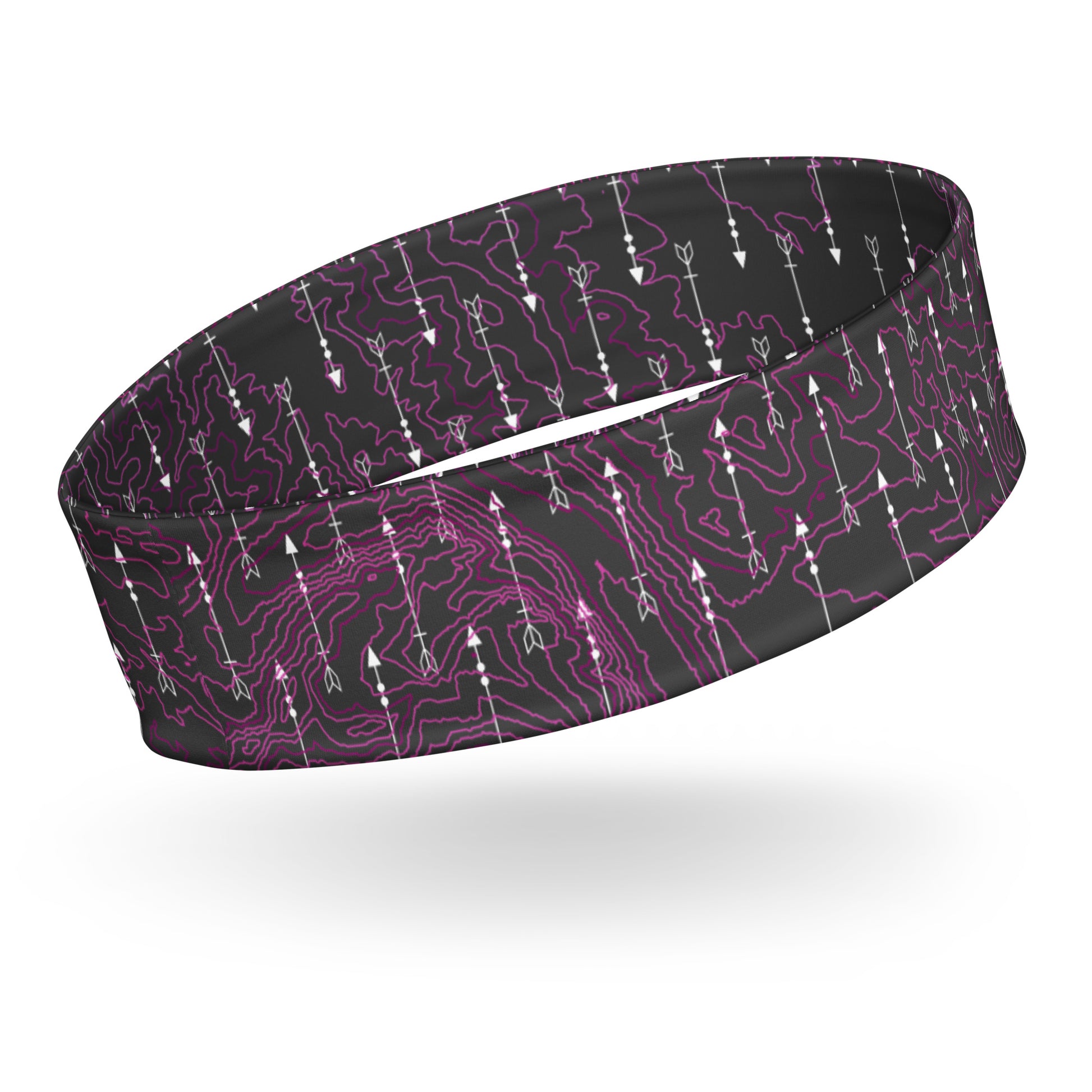 Unleash your inner adventurer with our Pink to Purple Topography Gradient leggings adorned with Arrow emblems. This set includes a complimentary headband, while supplies last. Elevate your style and embrace the journey today!