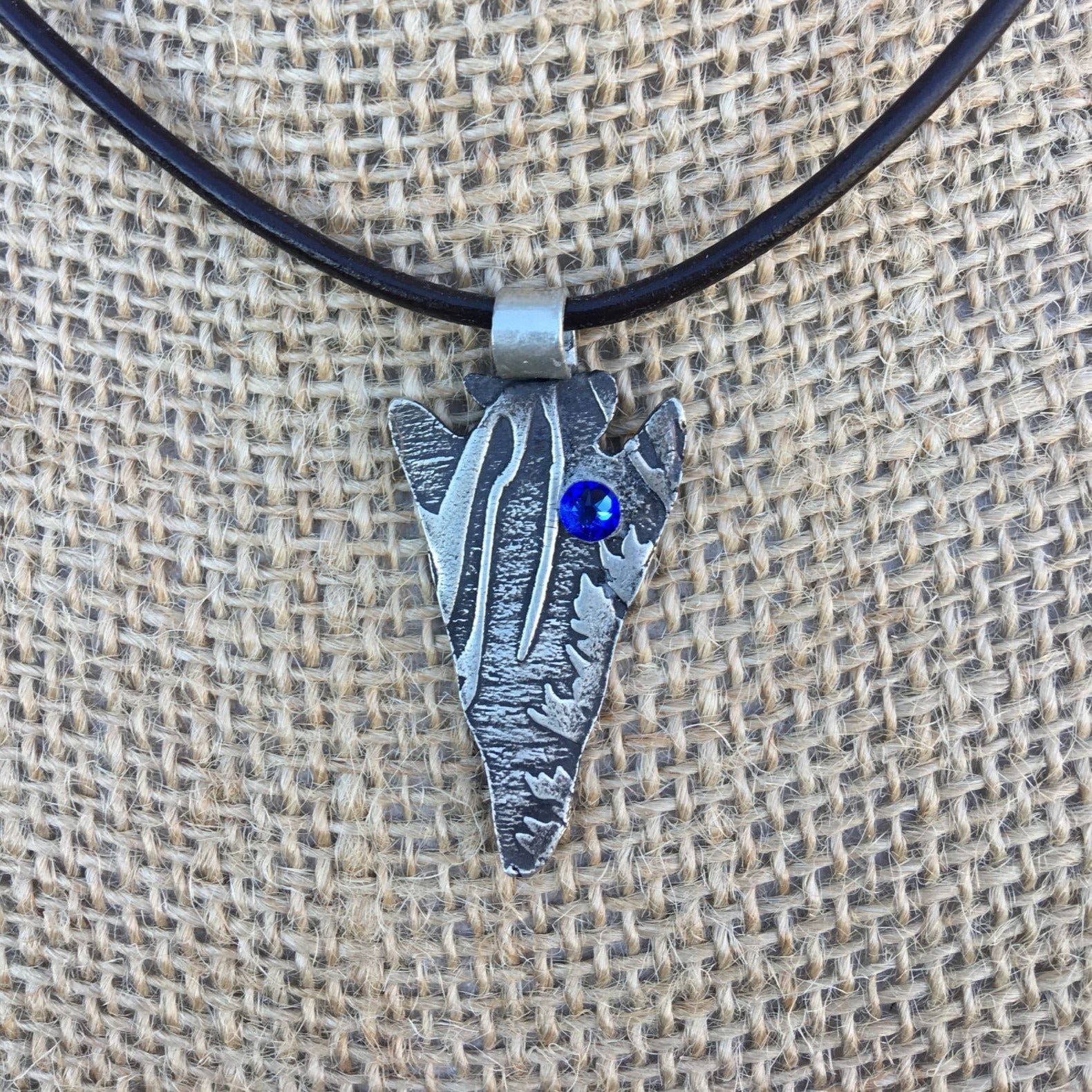 Sterling Silver Arrowhead Shape with Blue Rhinestone