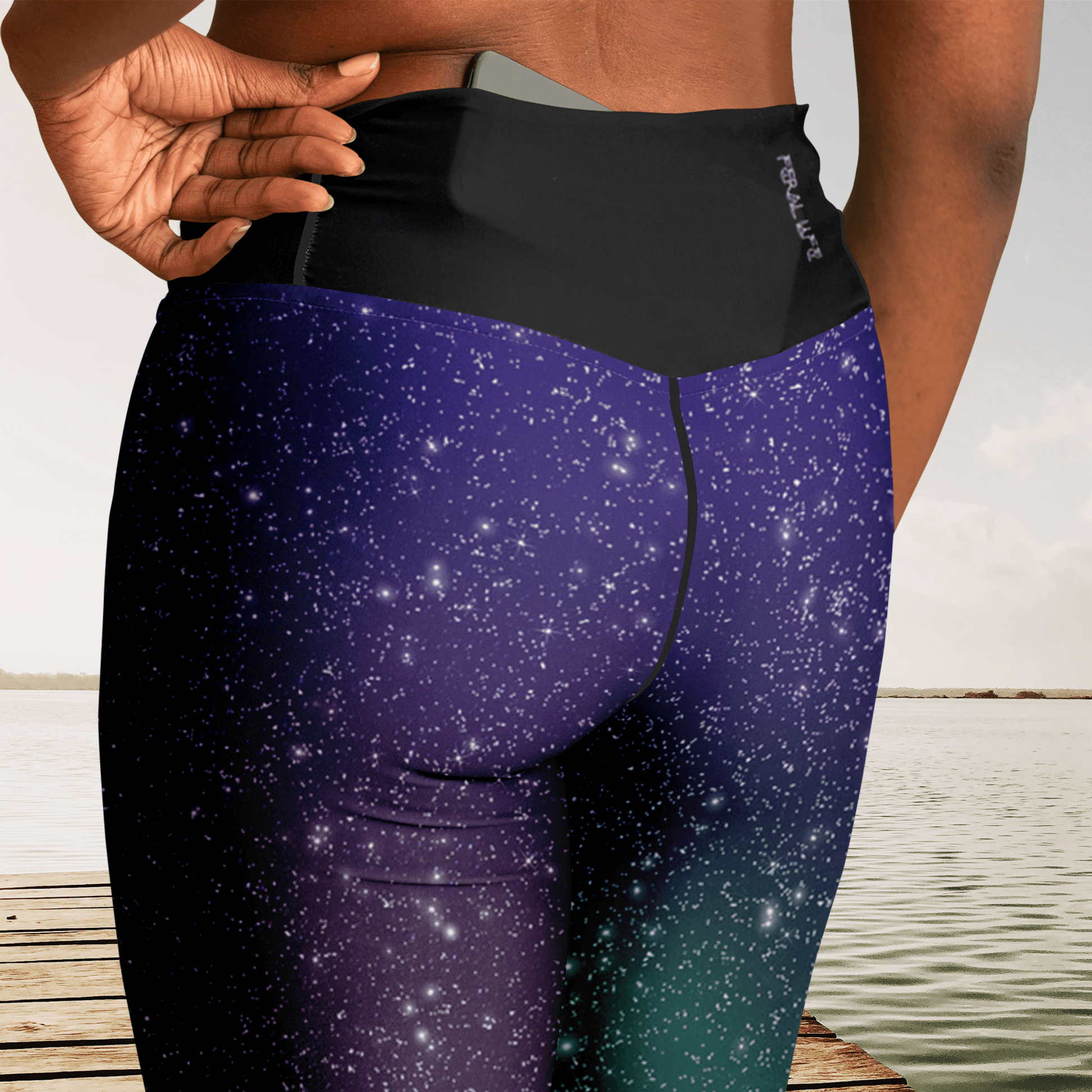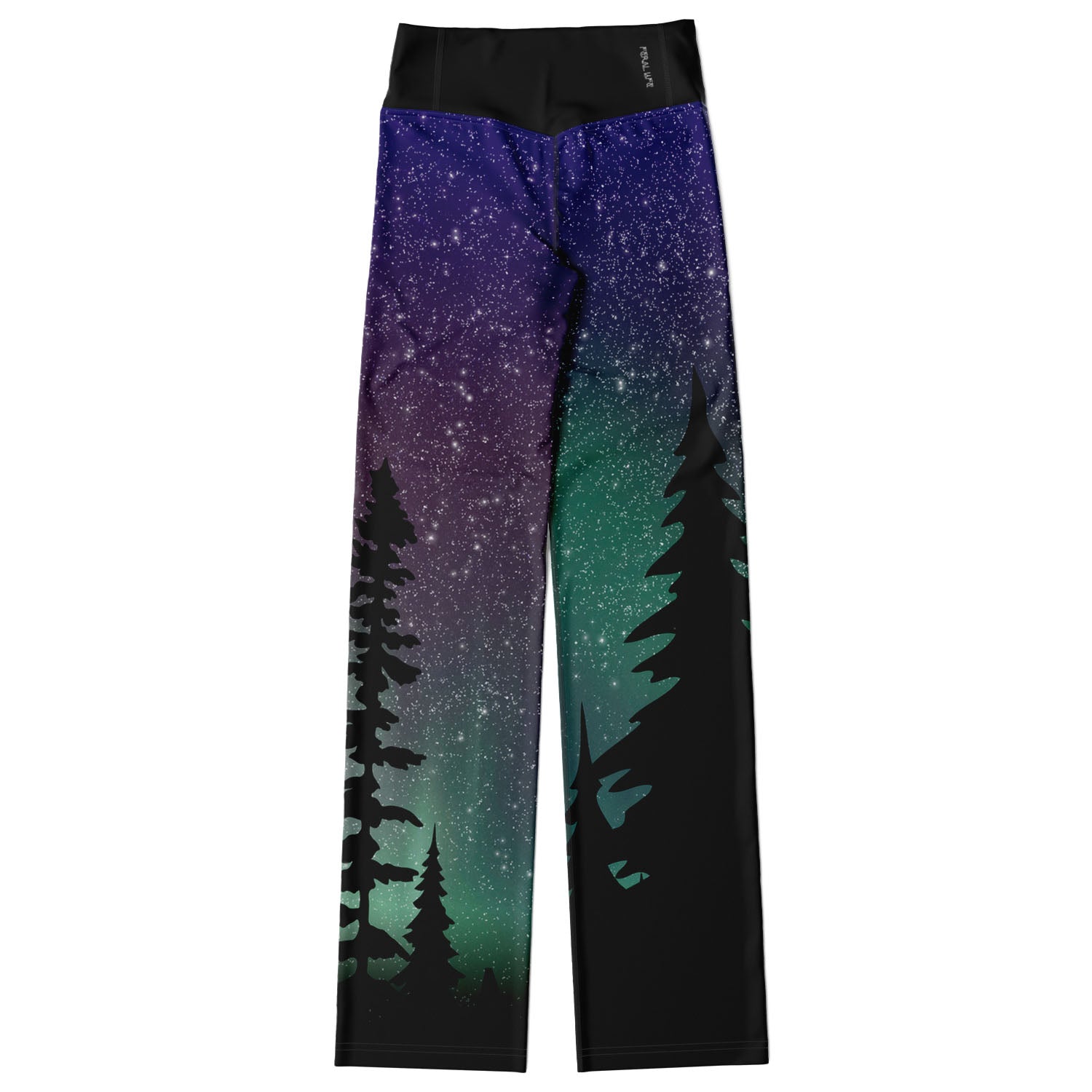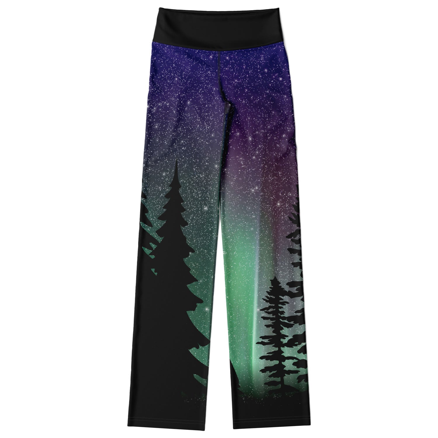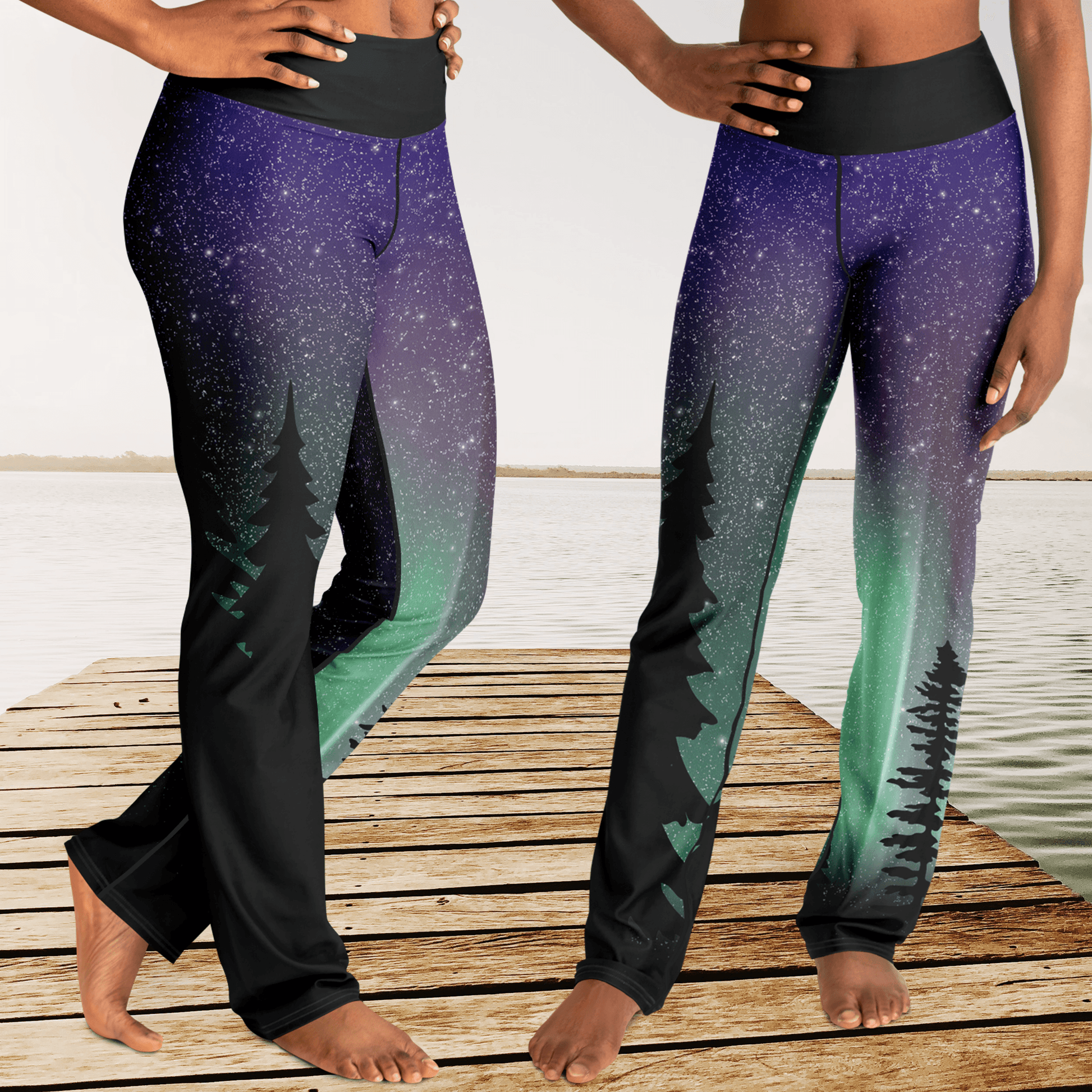 Aurora Flare Leggings: Embrace the beauty of the night sky with our Aurora Flare Leggings. Featuring a stunning aurora-inspired design, these leggings offer a vibrant and mesmerizing pattern that mirrors the celestial dance of the Northern Lights. The flared silhouette adds a touch of elegance and uniqueness, making them perfect for both casual outings and special occasions. Experience comfort and style as you showcase your love for the wonders of the natural world.
