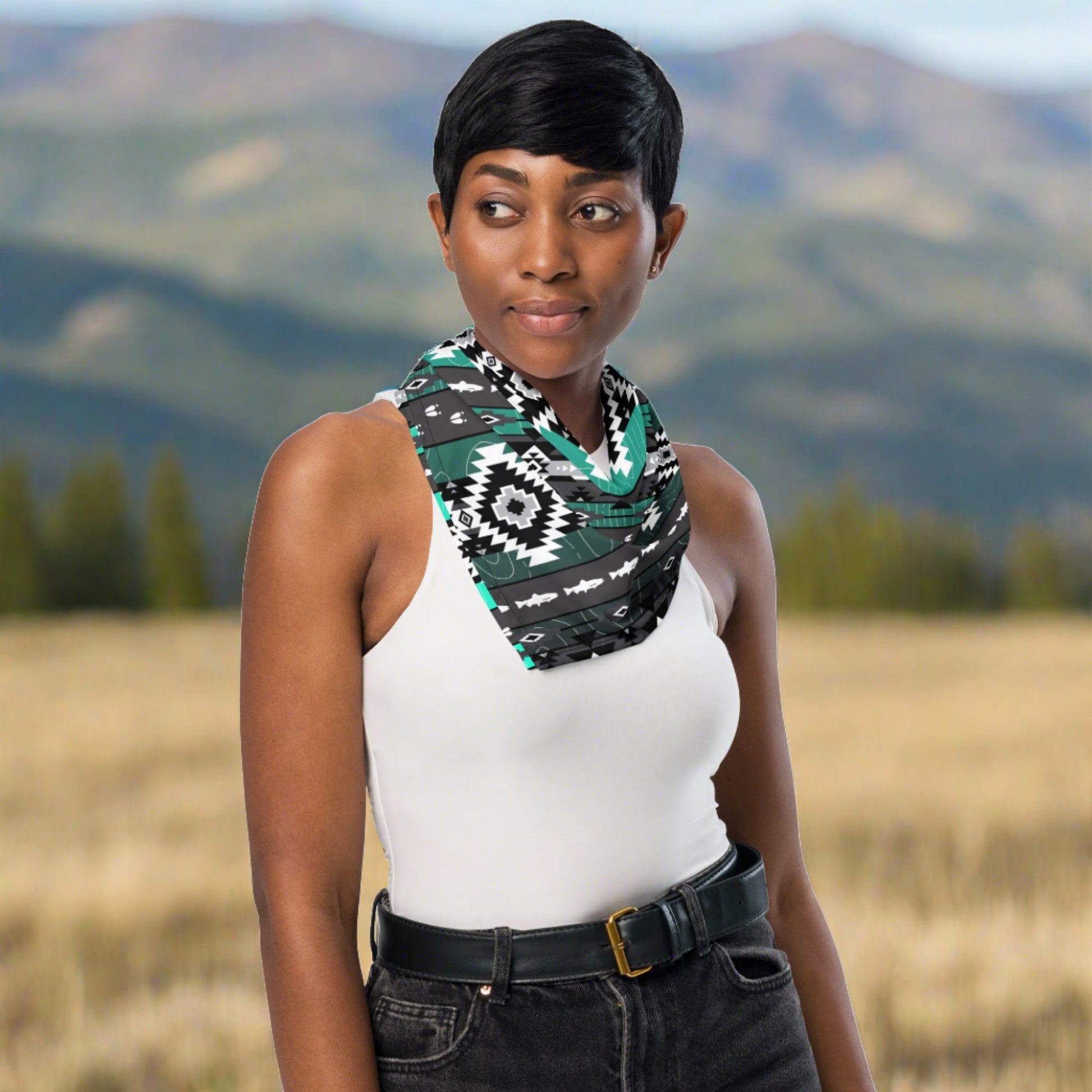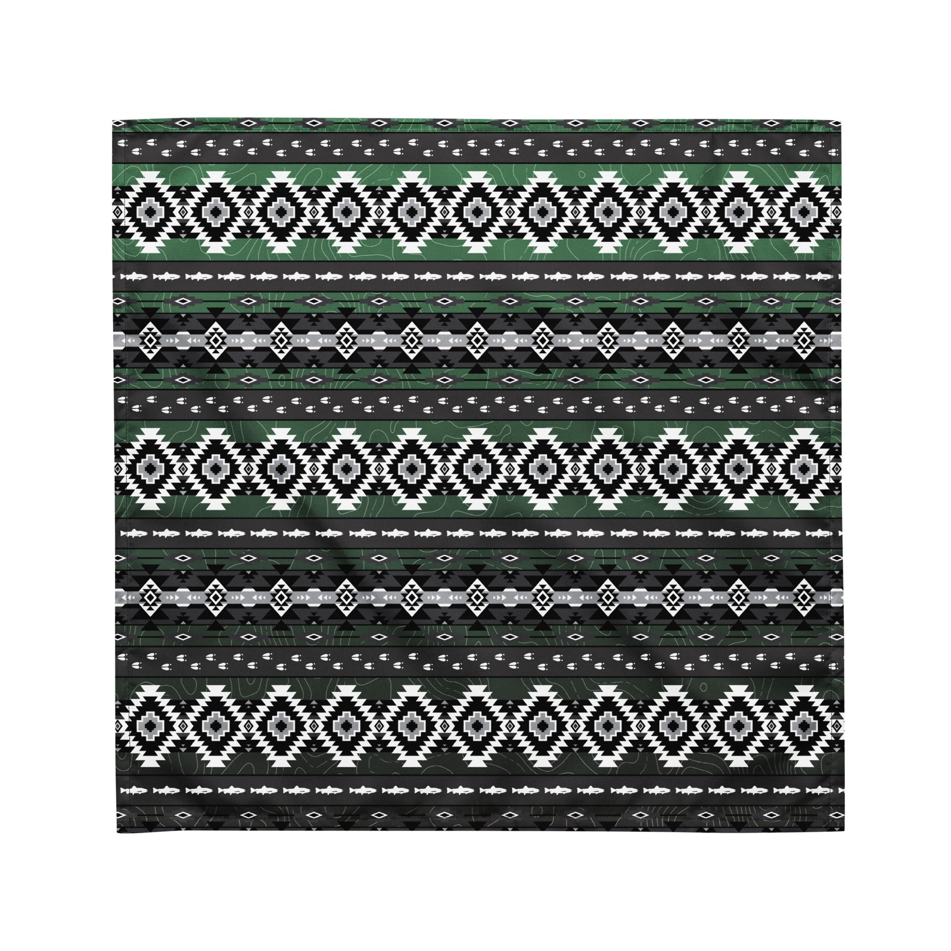 Inspired by timeless Western style, our Trout and Tracks Bandana features a captivating geometric motif adorned with intricate deer tracks and the graceful silhouette of trout. Available in five stunning color gradients, each bandana promises to elevate your outdoor adventures with a touch of rugged elegance. Its lightweight and soft-to-the-touch fabric makes it a comfortable accessory for all-day wear. Mix up your outfits by using this versatile piece as a headband, necktie, or armband. Plus, why not get a second bandana to match your pet's and family's style? Or mix it up with our matching leggings! With its multifunctional design, this bandana is sure to make a statement wherever you go.
