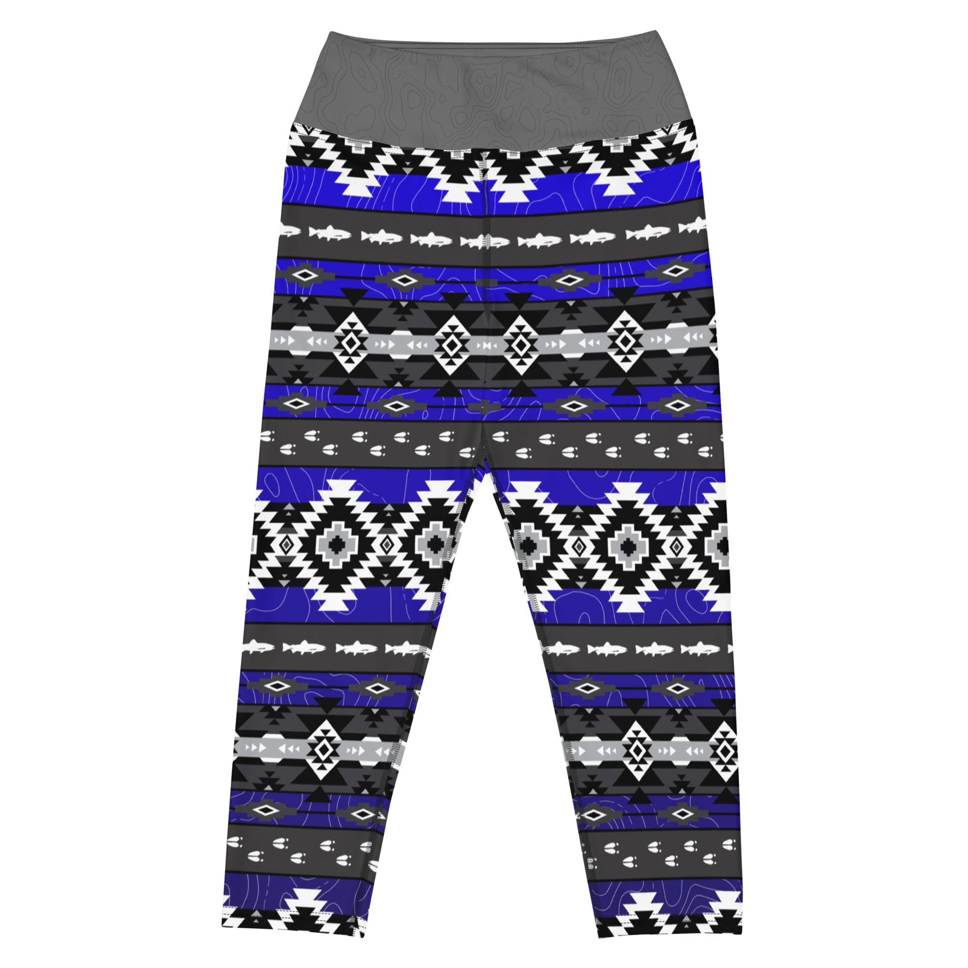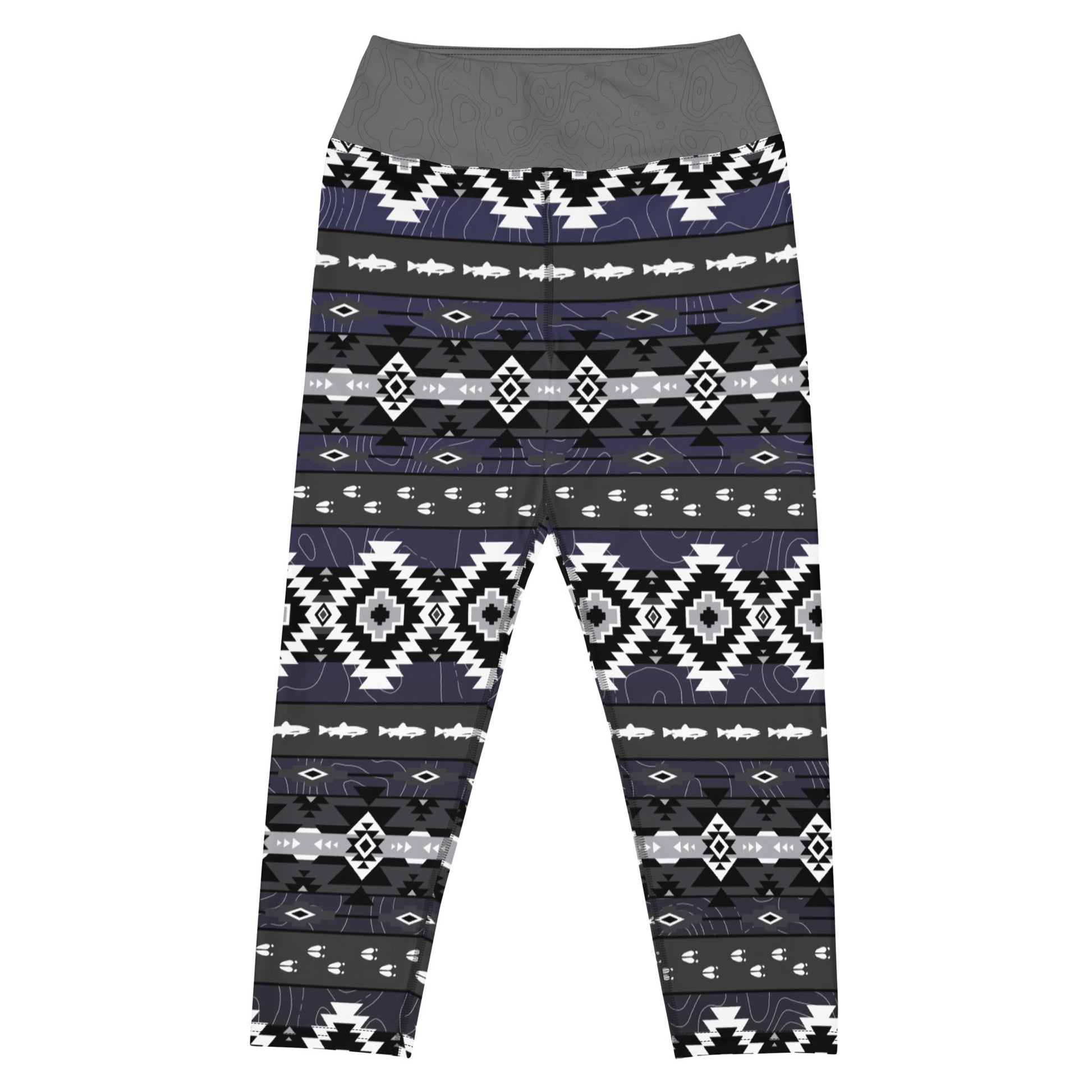 Step into the wild with our Trout and Tracks Leggings, where outdoor charm meets tribal flair. Inspired by the timeless Western style, these leggings feature a captivating geometric motif adorned with intricate deer tracks and the graceful silhouette of trout. Available in six stunning color gradients, each pair promises to elevate your outdoor adventures with a touch of rugged elegance. Embrace nature's beauty in every step with our Trout and Tracks Capri Leggings.