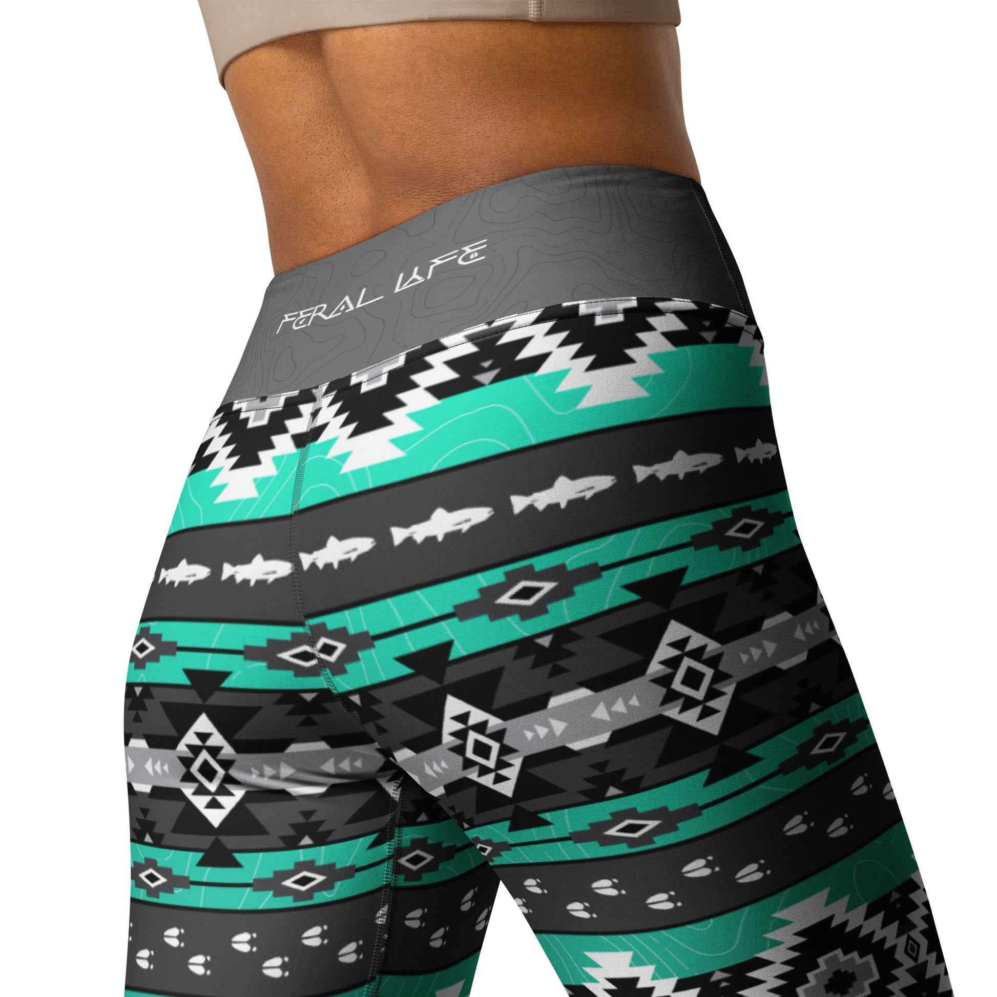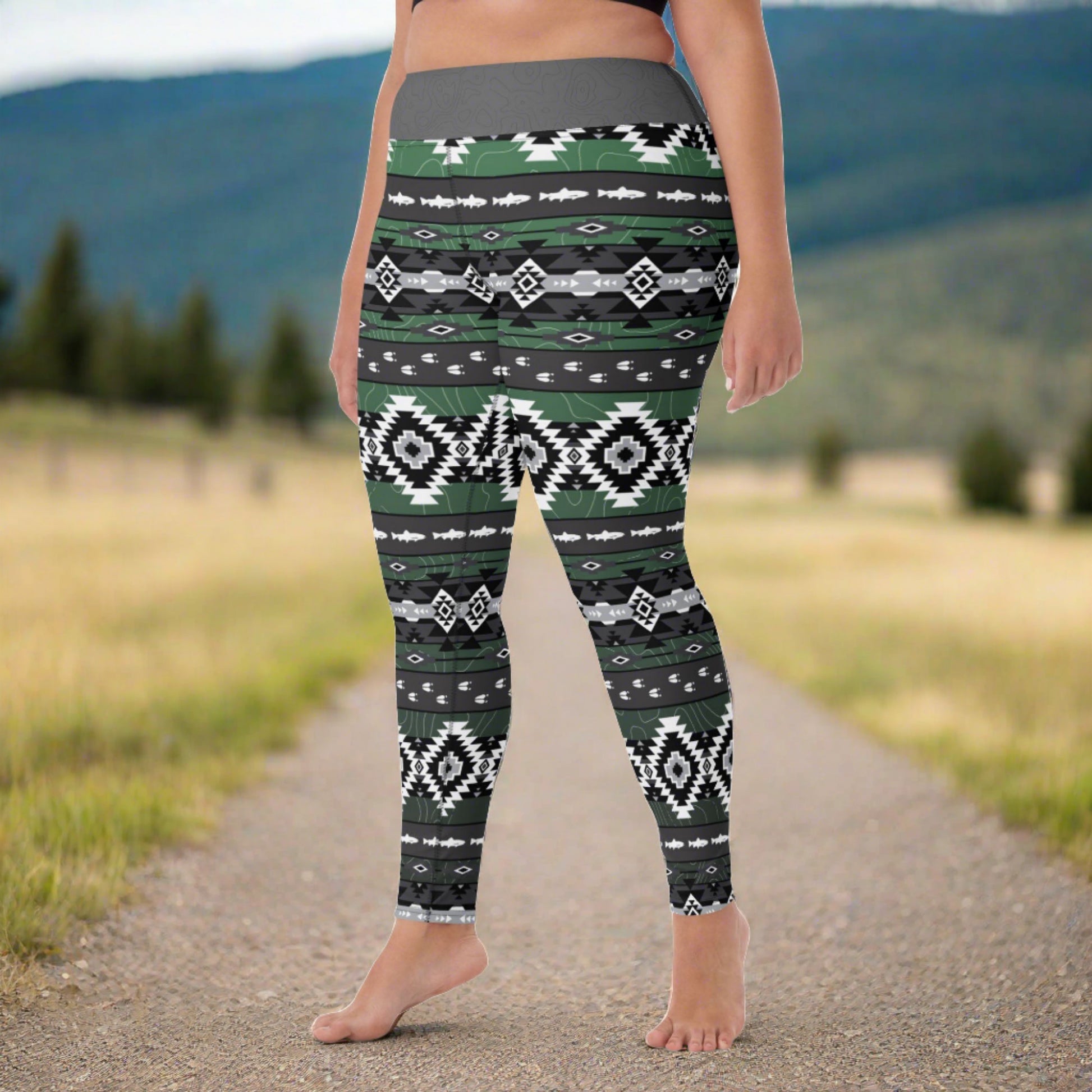 Step into the wild with our Trout and Tracks Leggings, where outdoor charm meets tribal flair. Inspired by the timeless western style, these leggings feature a captivating geometric motif adorned with intricate deer tracks and the graceful silhouette of trout. Available in six stunning color gradients, each pair promises to elevate your outdoor adventures with a touch of rugged elegance. Embrace nature's beauty in every step with our Trout and Tracks Leggings.
